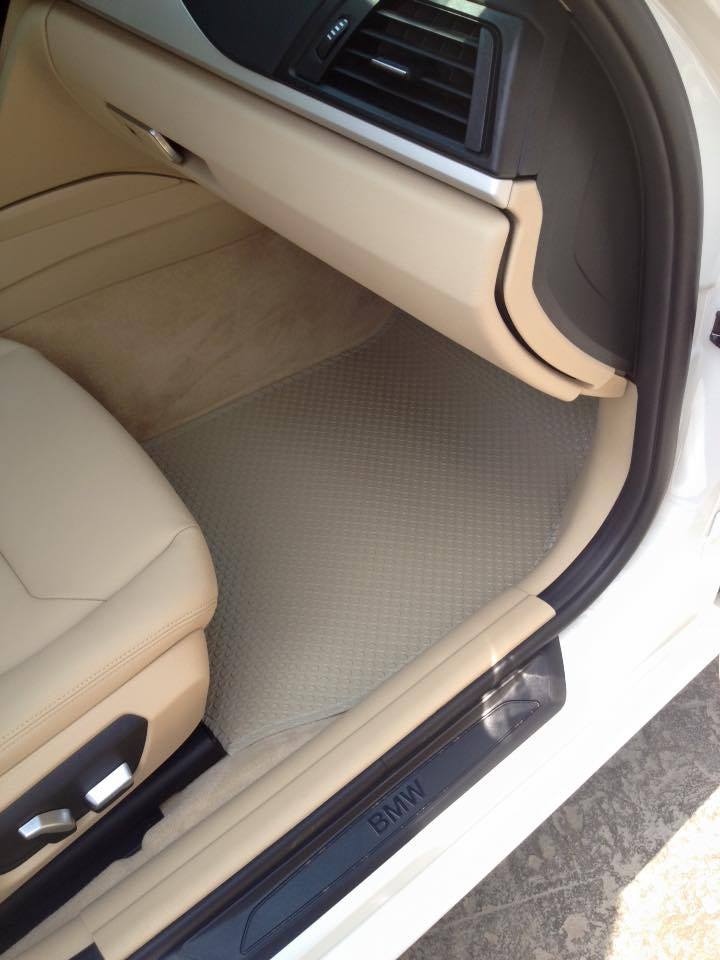 Lên bộ thảm Thailand cho BMW 320i tông màu kem cùng màu với nội thất.